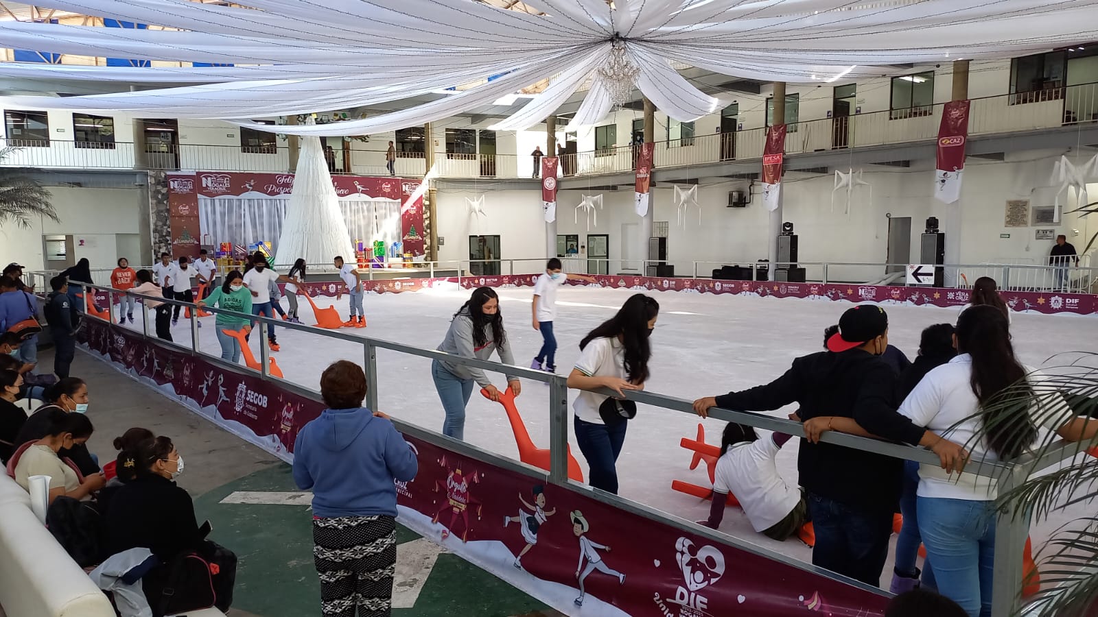 Este lunes, asistieron a la pista de hielo, alumnos del Telebachillerato comunitario Ojo Zarco, del centro de atención múltiple de educación especial número 53 de Mariano Escobedo, así como del plantel 06 del Colegio de Bachilleres del estado de Veracruz (COBAEV).