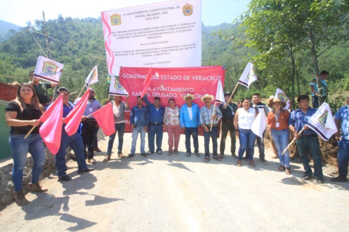 Rafael Delgado, Ver.- Con el fin de mejorar la calidad de vida de los habitantes de Tzoncolco, el presidente municipal de Rafael Delgado, Isauro Ambrosio Tocohua acompañado del cuerpo edilicio, dio banderazo de inicio de una obra de rehabilitación de camino rural con concreto hidráulico entre la carretera Tzoncolco y Telesecundaria Ricardo Flores Magón.