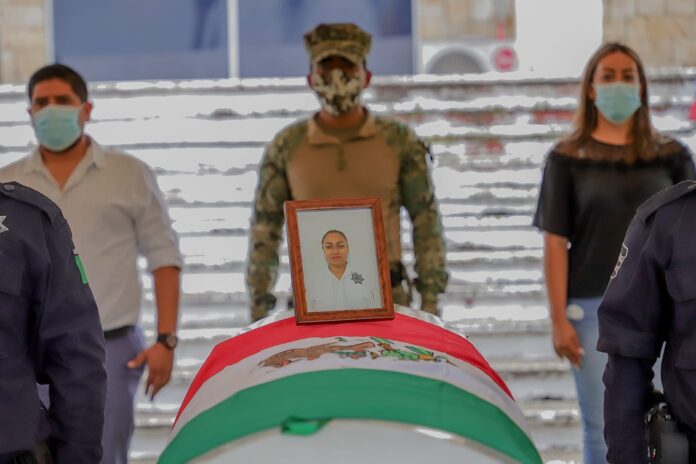 El Director de Protección Ciudadana y Movilidad, Capitán de Marina, Enrique Morales Tolentino, dirigió unas palabras a su hijo, madre, familiares y amigos que la acompañaron a su último pase de lista, para después trasladarse al lugar donde descansarán sus restos.