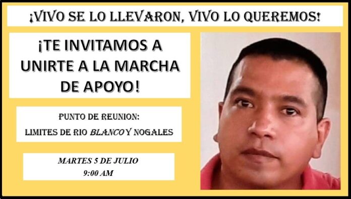 Río Blanco, Ver.- Familiares, amigos y vecinos de los municipios de Río Blanco y Nogales han convocado a una marcha para exigir la aparición con vida de Miguel Ángel Feria Gatica, quien desapareció el pasado 29 de junio.