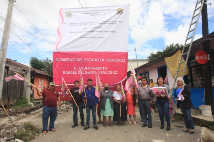 Rafael Delgado, Ver.- El progreso en Rafael Delgado no se detiene, es por eso que el alcalde, Isauro Ambrosio Tocohua, acompañado del regidor único, Juan Carrasco Concepción y el director de Obras Públicas, Mario Díaz López dio el banderazo de arranque a dos obras en el Tercer y Quinto Barrio de cabecera municipal.