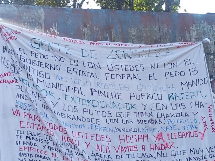 Zongolica, Ver.- Una narcomanta y bolsas plásticas en color negro con restos de animales, fueron dejadas en la carretera Zongolica-Comalapa la madrugada de este 8 de diciembre.
