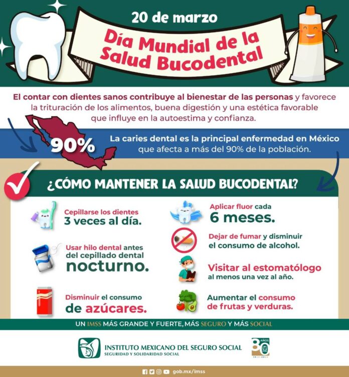 Orizaba, Ver.- El Instituto Mexicano del Seguro Social (IMSS) en Veracruz Sur aconseja a la población visitar al dentista cada seis meses, cepillar los dientes por lo menos tres veces al día y evitar alimentos con un alto contenido en azúcar como parte de la prevención de enfermedades bucodentales.