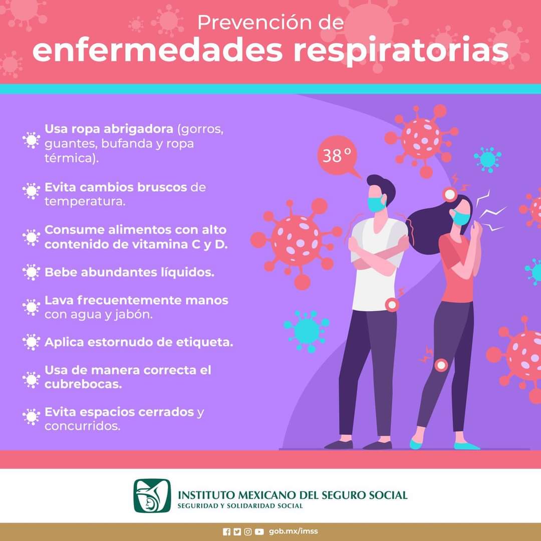 Orizaba, Ver.- El Instituto Mexicano del Seguro Social (IMSS) en Veracruz Sur hace una invitación a la población en general para implementar las medidas necesarias y prevenir enfermedades respiratorias infecciosas que son más comunes durante la temporada invernal.