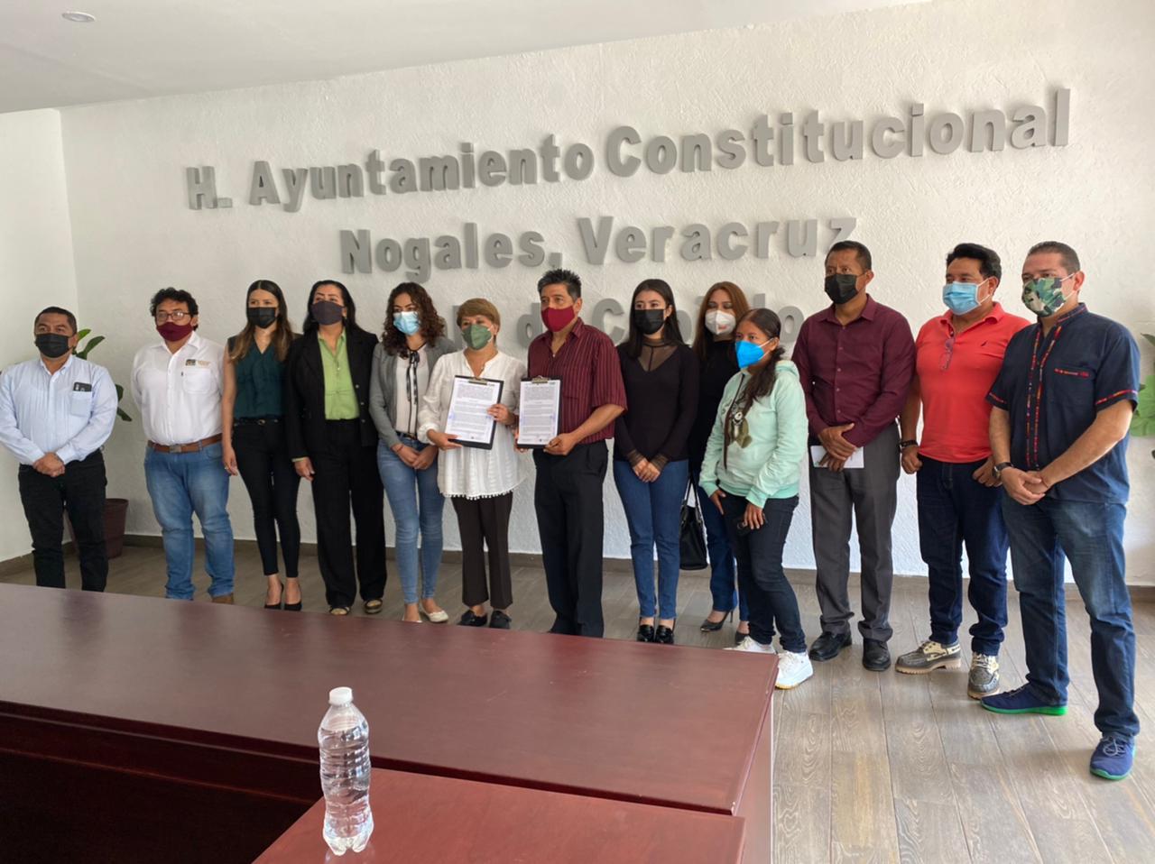 Nogales, Ver.- El gobierno municipal que encabeza, Ernesto Torres Navarro e integrantes del cabildo firmaron convenio de colaboración con directivos de la Universidad para el Bienestar “Benito Juárez García”, sede Río Blanco para que los estudiantes realicen sus prácticas de formación y servicio social en los departamentos del ayuntamiento local.