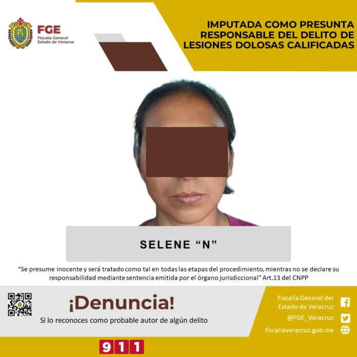 Huatusco, Ver.- La Fiscalía Regional Córdoba realizó imputación en contra de Selene “N” como presunta responsable del delito de lesiones dolosas calificadas cometido en agravio de la víctima con identidad resguardada.