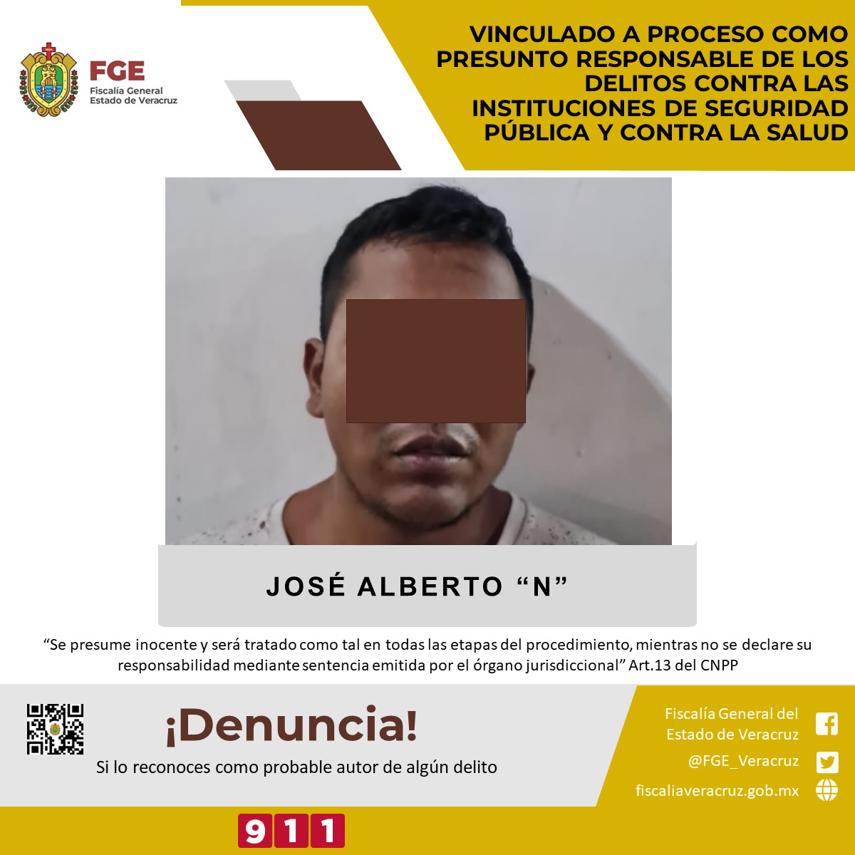 Córdoba, Ver.- La Fiscalía Regional Córdoba obtuvo vinculación a proceso en contra de José Alberto “N” como presunto responsable de los delitos contra las instituciones de seguridad pública y contra la salud.