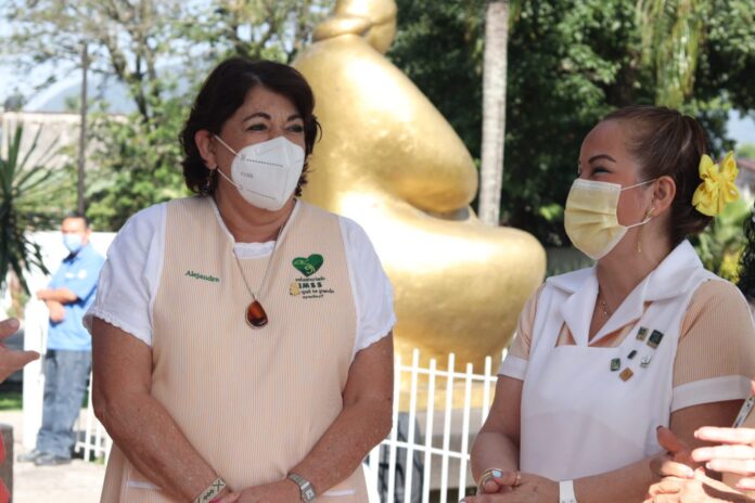 Orizaba, Ver.- Como parte de su gira de reactivación de servicios, la presidenta Honoraria del Voluntariado Nacional IMSS, doctora Alejandra Aburto de Robledo, visitó la Representación del Instituto Mexicano del Seguro Social (IMSS) Veracruz Sur, donde fue recibida por su titular, la doctora María Magdalena Chiquito Rivera.