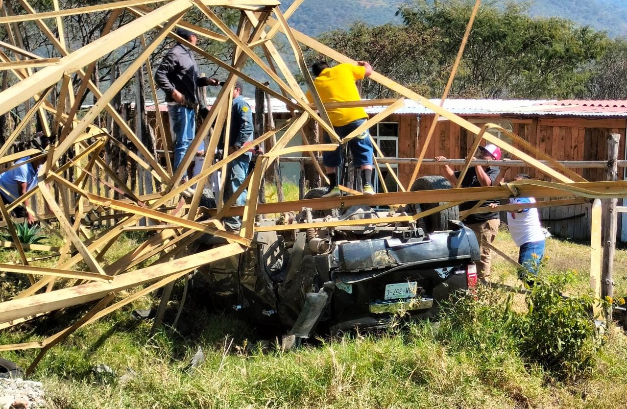 Nogales, Ver.- Al parecer por un supuesto infarto, un hombre que viajaba a bordo de su camioneta sobre la nueva carretera que va hacia la localidad de Balastrera, perdió el control del vehículo en el que viajaba impactándose contra una torre de electricidad la cual derribó.