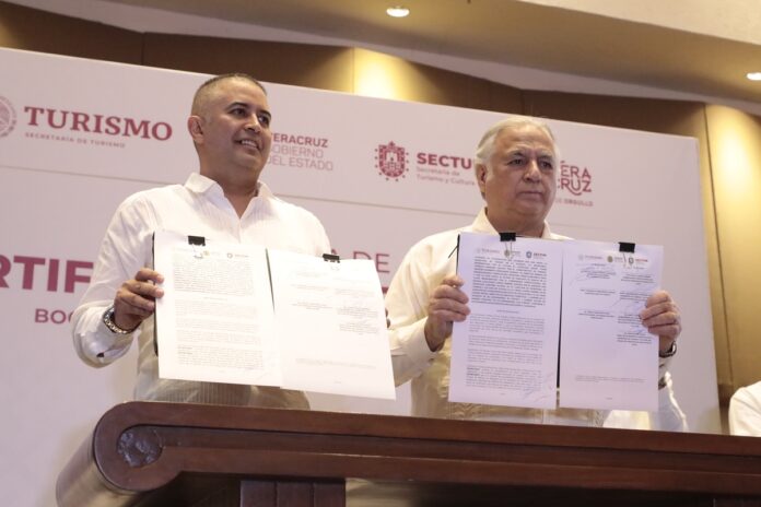 Boca del Río, Ver.- Como impulso a la competitividad y excelencia del sector, los titulares de las secretarías de Turismo de México y de Veracruz, Miguel Torruco Marqués e Iván Martínez Olvera, entregaron 300 incentivos y certificados del Gobierno Federal a empresas veracruzanas destacadas en innovación, sustentabilidad y servicios o productos alineados con estándares de calidad.
