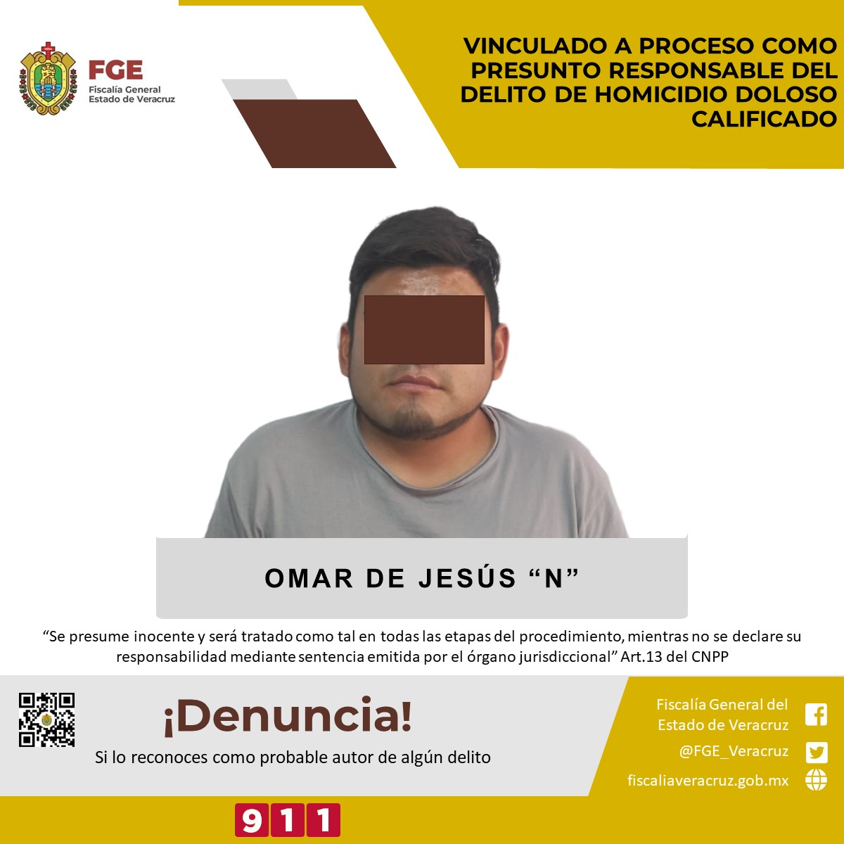 Nogales, Ver.- La Fiscalía Regional Córdoba obtuvo vinculación a proceso en contra de Omar de Jesús “N” como presunto responsable del delito de homicidio doloso calificado cometido en agravio de las víctimas F.L.C., y M.S.J.L.