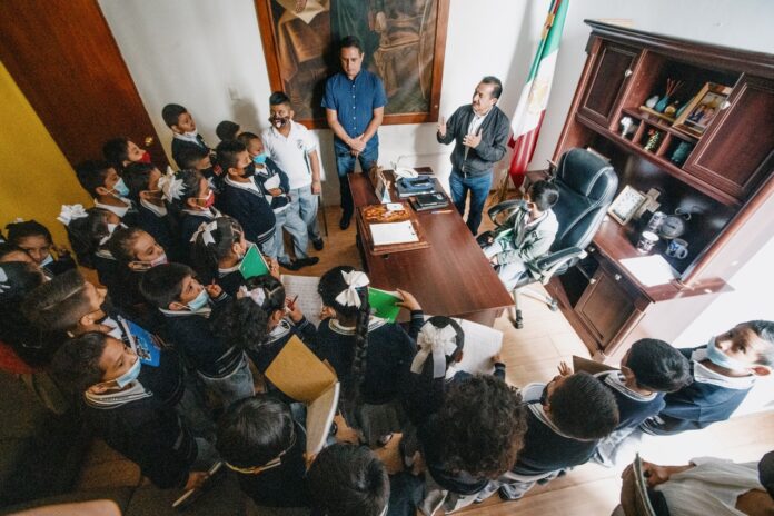 Coscomatepec, Ver.- Autoridades municipales recibieron este lunes a alumnos de tercer grado de la escuela primaria “Fray Alonso de Santiago”, esto como parte de las actividades escolares para que los estudiantes conocieran las funciones que cada área del ayuntamiento desarrolla en el servicio público.